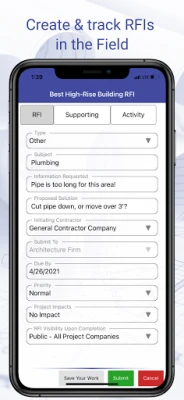 Umožnite svojmu terénnemu tímu neustály prístup k dôležitým dátam. ConDoc poskytuje výkonné nástroje pre prácu priamo na mieste, online aj offline, vrátane správy výkresov, požiadaviek na informácie (RFI), fotografií, denných záznamov, kontrol kvality a revízií. Jednoducho nahrávajte fotky a videá priamo z terénu, a ConDoc sa postará o ich automatickú synchronizáciu. Okrem toho, platforma zjednodušuje sledovanie času zamestnancov naprieč portfóliom projektov a centralizuje kľúčové prvky riadenia projektu, ako sú podania, harmonogramy a špecifikácie, čo podporuje efektívnu spoluprácu celého tímu.