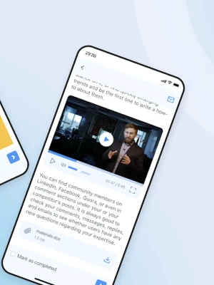 Počas samotného štúdia je interakcia a prehľad kľúčová. Vďaka aplikácii môžete sledovať jednotlivé lekcie, ľahko si označovať už prejdúce časti a držať si tak prehľad o svojom pokroku. Svoje vedomosti si môžete overiť prostredníctvom testov a odovzdávať domáce úlohy priamo cez platformu. Máte otázky alebo potrebujete objasniť nejakú tému? Priamo v aplikácii môžete komunikovať s lektormi a prezerať si ich odpovede, čím si zabezpečíte neustálu podporu a pochopenie.