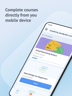 Odteraz sú online kurzy založené na SendPulse dostupné priamo v našej mobilnej aplikácii. Pohodlne sa vzdelávajte a rozvíjajte svoje zručnosti kdekoľvek a kedykoľvek. Objavte komplexné vzdelávacie programy pre váš osobný a profesionálny rast.