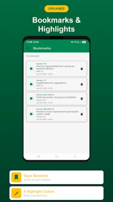 Nigerian Electoral Act 2022 exceluje vďaka súboru funkcií navrhnutých pre maximálnu efektivitu a komfort. Vychutnajte si úplnú slobodu vďaka 100% offline prístupu ku všetkým 155 sekciám rozdeleným do 9 častí, bez potreby internetového pripojenia po počiatočnom načítaní. Využite inteligentné vyhľadávanie pre okamžité nájdenie akejkoľvek sekcie, kľúčového slova alebo ustanovenia. Personalizujte si svoje štúdium pomocou záložiek pre rýchly návrat k dôležitým pasážam, zvýraznite text v šiestich farebných odtieňoch a prispôsobte si veľkosť písma pre optimálne čítanie. Nočný režim zabezpečuje pohodlné čítanie vo dne aj v noci, zatiaľ čo moderné rozhranie Material Design 3 zaručuje plynulý a intuitívny zážitok. Nechýba ani možnosť zdieľať konkrétne sekcie s kolegami či priateľmi.