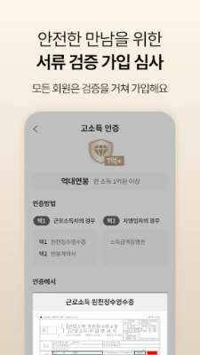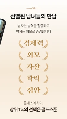 골드스푼 revolučne mení spôsob spoznávania vďaka nášmu prelomovému systému overovania profilov – ako prvá komunita v Kórei, ktorá vyžaduje a kontroluje písomné dokumenty. Náš špecializovaný tím dôkladne overuje každého člena prostredníctvom listín ako výpisy z katastra nehnuteľností, potvrdenia o príjme či lekárske licencie, po ktorých vydávame jedinečné „signatúrne odznaky" dôvery. Týmto spôsobom vytvárame bezpečné a spoľahlivé prostredie pre vzájomné stretnutia. Okrem toho, ženy majú možnosť vstúpiť po úspešnom profile hodnotenom existujúcimi členmi. Sme tiež hrdí na naše exkluzívne partnerstvá s Kórejskou asociáciou lekárov verejného zdravotníctva a Kórejskou asociáciou lekárov tradičnej čínskej medicíny, čo podčiarkuje prítomnosť vysoko kvalifikovaných profesionálov v našej komunite.