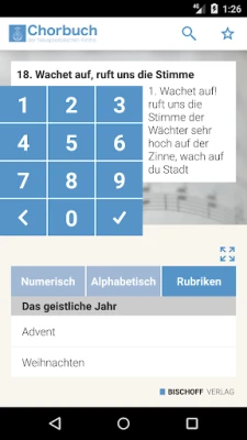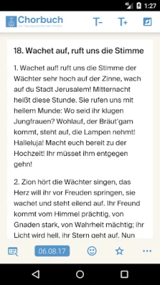 NAK Chorbuch sprístupňuje všetky texty z chorálovej knihy pre novapoštolské bohoslužby. Je ideálny pre hudobných nadšencov, dirigentov a vedúcich služieb. Ponúka intuitívne ovládanie a rýchle vyhľadávanie piesní podľa čísla, kategórie alebo celého textu. Objavte jednoduchosť prístupu k duchovným textom.