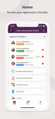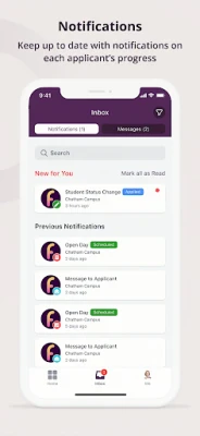 Nikdy vám neunikne žiadna dôležitá informácia vďaka okamžitým upozorneniam, ktoré vás budú priebežne informovať o stave vašej prihlášky. Všetky správy, oznámenia a aktualizácie sú prehľadne usporiadané vo vašom osobnom profile, takže máte neustály prístup k najaktuálnejším dátam. Platenie poplatkov za prijatie je teraz jednoduchšie ako kedykoľvek predtým. S viacerými bezpečnými platobnými možnosťami priamo v aplikácii môžete transakcie dokončiť rýchlo a bez námahy, pričom celú svoju platobnú históriu nájdete na jednom mieste.