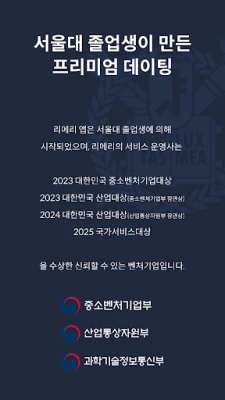 Zažite prémiové zoznamovanie s 리메리, kde sa overuje ekonomická sila alebo kariéra pomocou AI. Táto bezpečná aplikácia od skúseného prevádzkovateľa chráni vaše súkromie a spája rozvedených s dôverou.