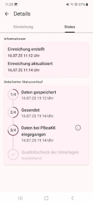 Aplikácia PBeaKK sa stáva vaším centrálnym bodom pre všetku komunikáciu. Po aktivácii vášho digitálneho poštového priečinka a zvolení elektronického odosielania vám PBeaKK doručí rozhodnutia a ďalšie dôležité dokumenty priamo do aplikácie, čo zaručuje rýchly a bezpečný prístup. Navyše, pre každé podanie, ktoré odošlete, získate v aplikácii podrobný prehľad o jeho aktuálnom stave. Naše statusy, ako „Postúpenie a uloženie", „Prijatie a kontrola", „Začatie spracovania" alebo „Chyba", vám poskytujú plnú transparentnosť. S PBeaKK máte vždy prehľad a kontrolu nad priebehom vašich záležitostí.